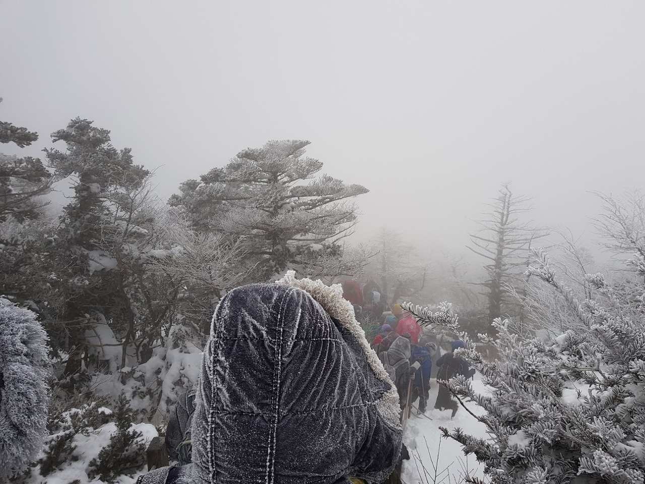 결론부터 말하자면 일출은 못 봤다. 날씨가 많이 안 좋았고, 이미 그럴 것이란 걸 일기예보로 알고 있었고, 그래도 한 가닥 희망을 가지고 오른 것이었지만 자연은 엄격했다. (듣기로 신정 한라산 새해맞이를 성공하는 케이스가 드물다고 한다. 통계적으로 일출을 못 보는 해가 더 많았다고.)