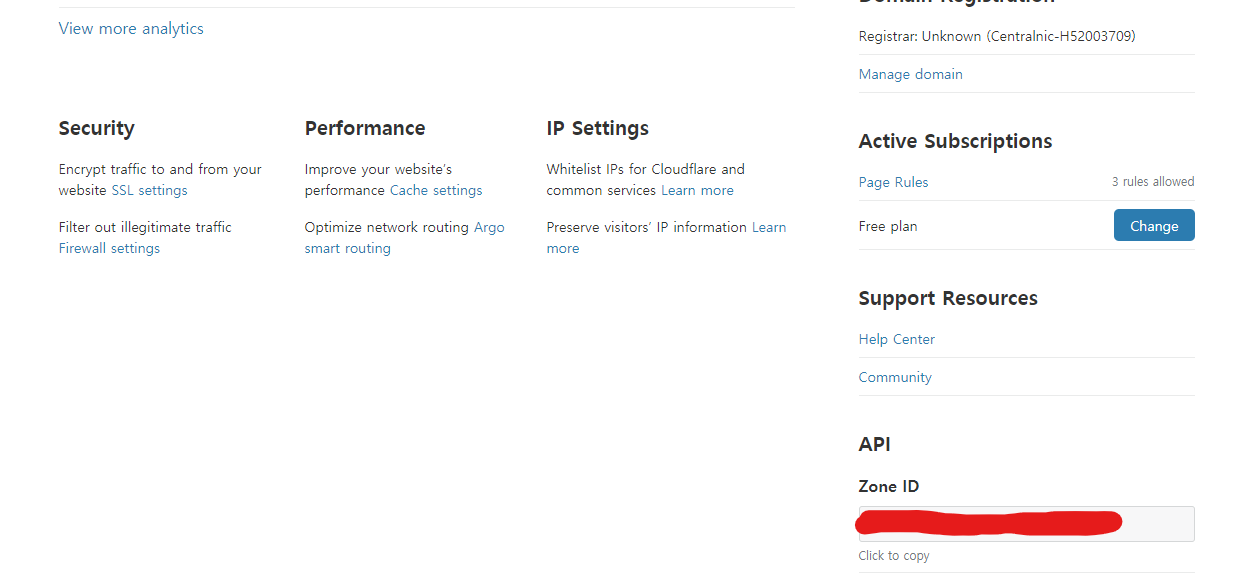 Zone ID, Global API Key 확인