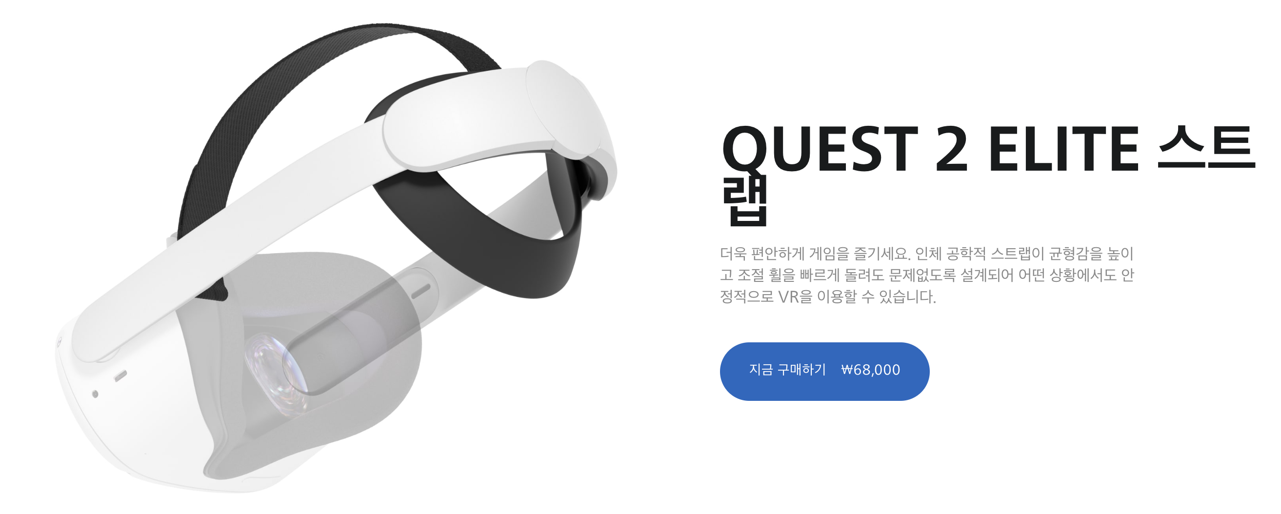 착용해본 순간, 가격이 저렴하게 나온 만큼, 비용을 아끼기 위한 노력을 많이 했다는 생각이 들었다. 특히 헤드셋을 착용할 때 머리를 조여주는 스트랩이 굉장히 조잡해서 장시간 착용하면 광대가 아팠다. 오큘러스 구매할 때에 머리를 좀 더 편하게 받쳐주는 "엘리트 스트랩(6만원 가량)"을 선택하는 옵션이 있었는데, 찾아보니 기본 스트랩은 사실상 없는 셈치고 모두가 엘리트 스트랩을 사용할 것을 추천하고 있었다. 이 엘리트 스트랩도 내구도가 약해서 여기저기서 불만이 터져나오고는 있지만, 기본 스트랩으로 광대가 박살나는 것보다는 나았기에 구매해야만 했다. 엘리트 스트랩이 반강제로 필수가 되는 셈이라 사실 41만원이 아닌 47만원인 셈이다.