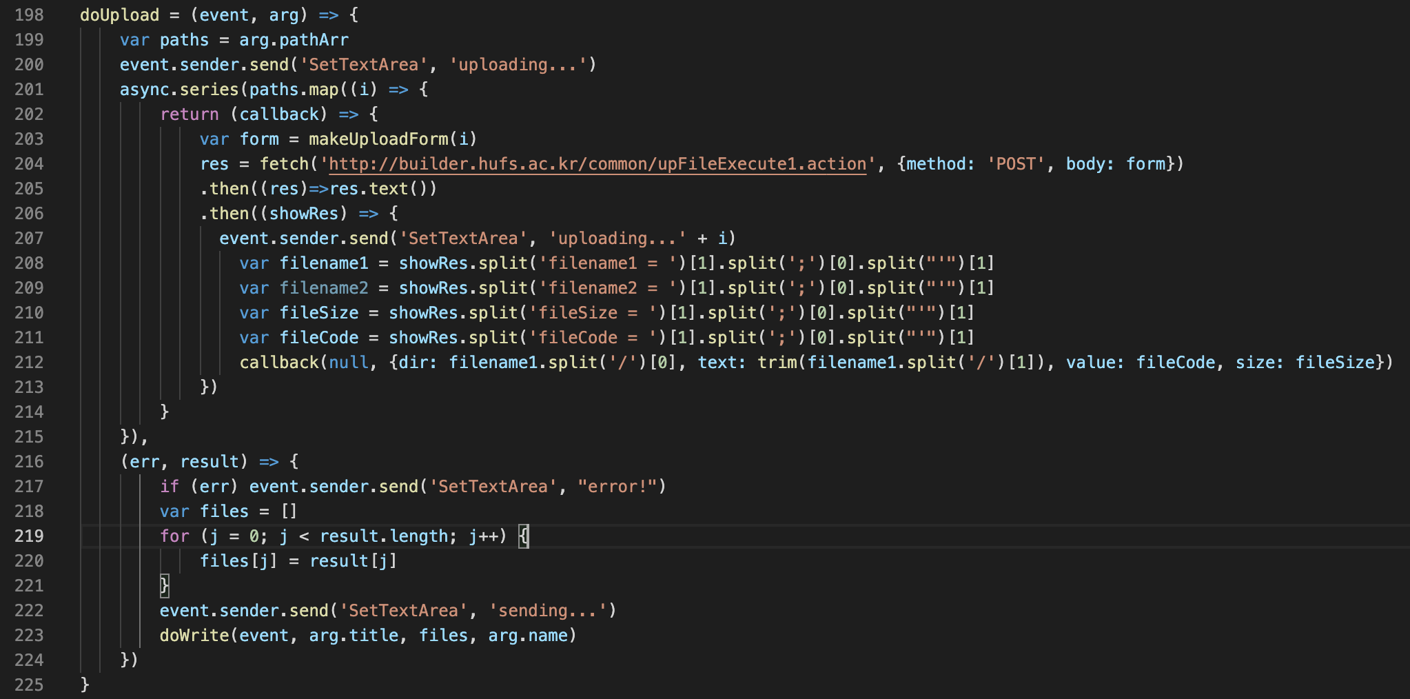 문제는 몇년 간 홈페이지 게시판에 쌓아놓았던 활동 사진들을 옮겨야 했다는 것입니다. 대학 홈페이지는 게시판 인터페이스가 매우 구렸기 때문에, 게시글 안에 사진을 올리는 과정이 매우 번거로웠습니다. 게시글당 최대 10개까지의 사진을 첨부할 수 있었으나, 그 사진을 일괄 선택하는 것이 막혀있었기에 클릭질을 수십회를 반복해야 했습니다. 이렇게 작업했다간 며칠동안 사진만 복붙해야하는 상황이었기에, 후배가 저에게 업로드를 편하게 할 수 있는 방법이 없는지 물어봤습니다.