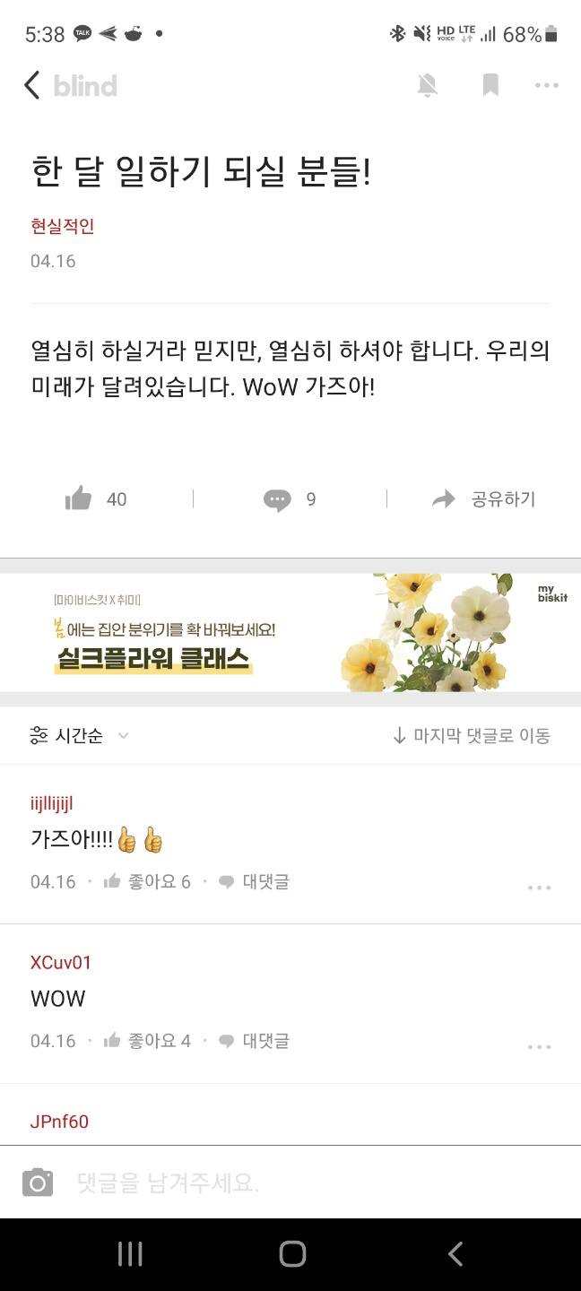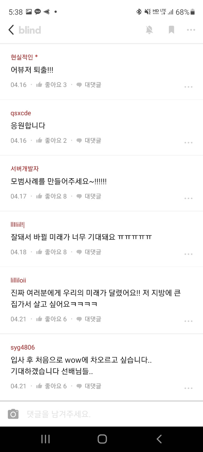 그리고 블라인드에서도 기대감이 고조된 글들이 올라왔다. 요약하자면 '당첨된 놈들 어뷰징하지 말고 열심히 일해라. 니들 때문에 제도 정착화 안 되면 뒤진다' 였다.