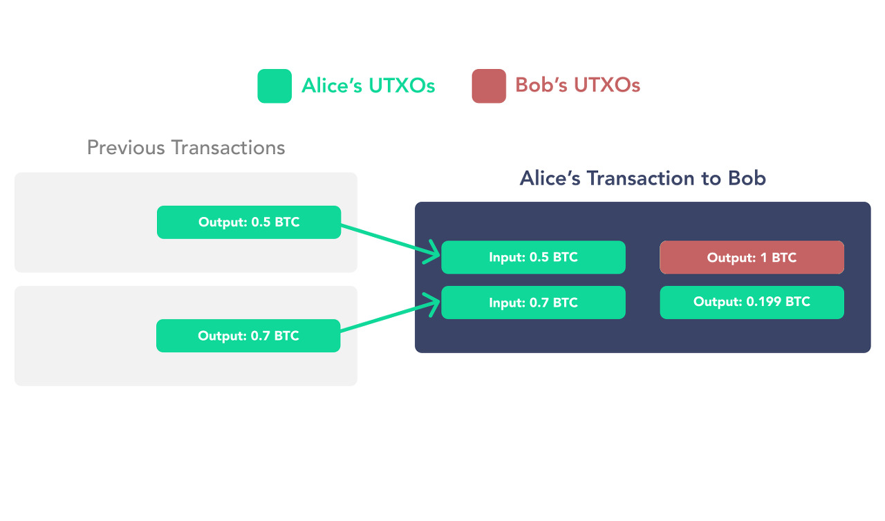 자기가 가진 잔돈을 합치는 데도 수수료를 내야하는 뿅뿅한 화폐가 있다? 뿌슝빠슝 (출처 : https://river.com/learn/bitcoins-utxo-model/ )