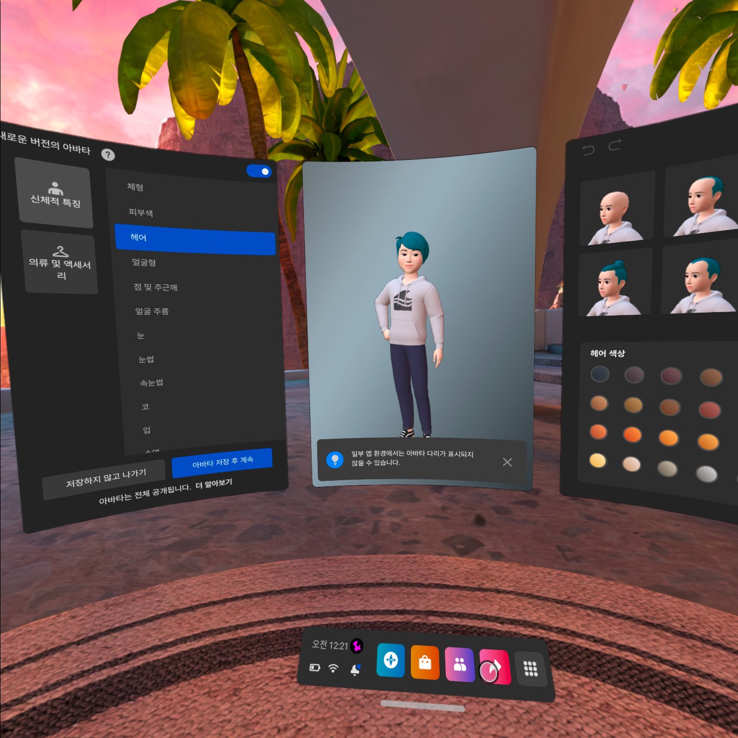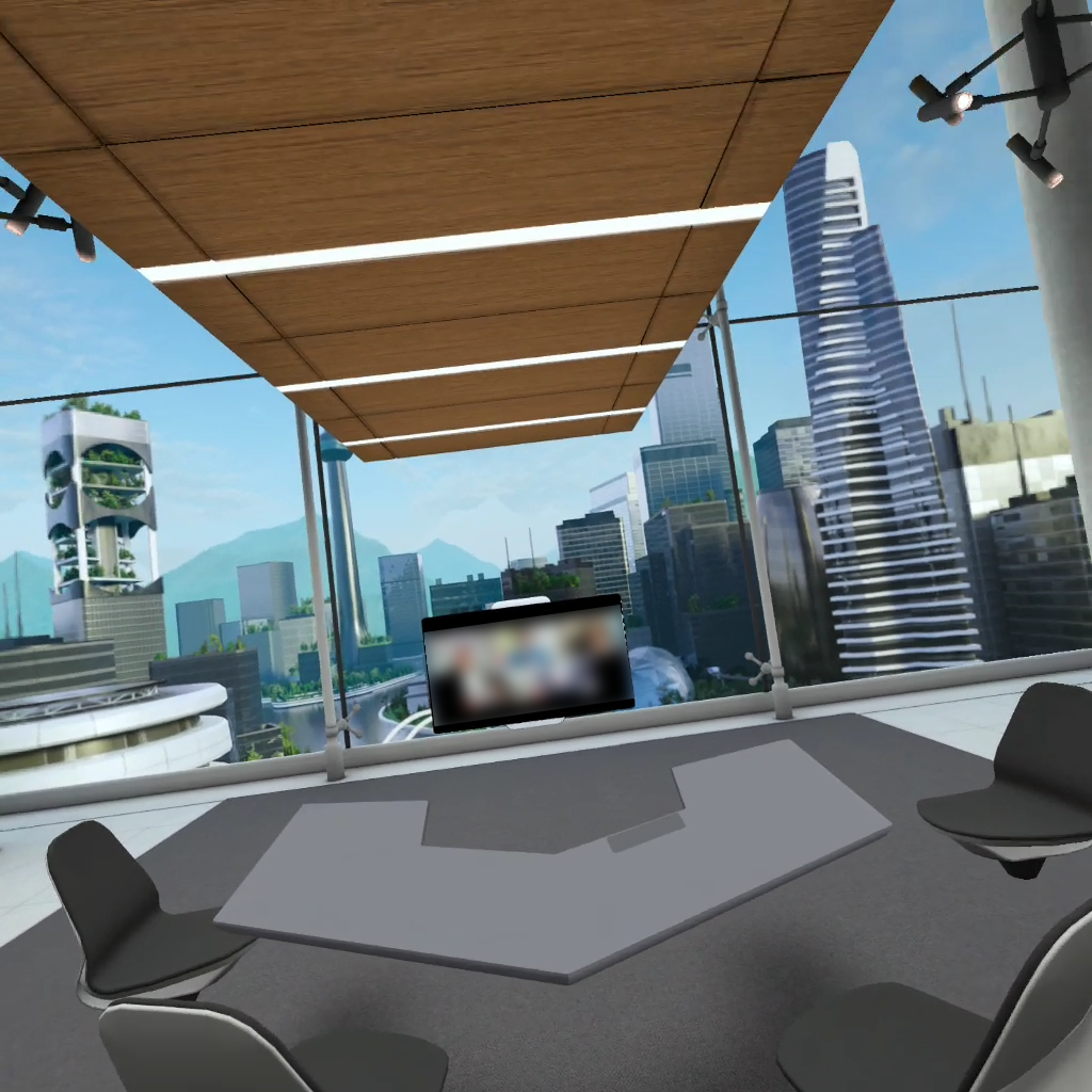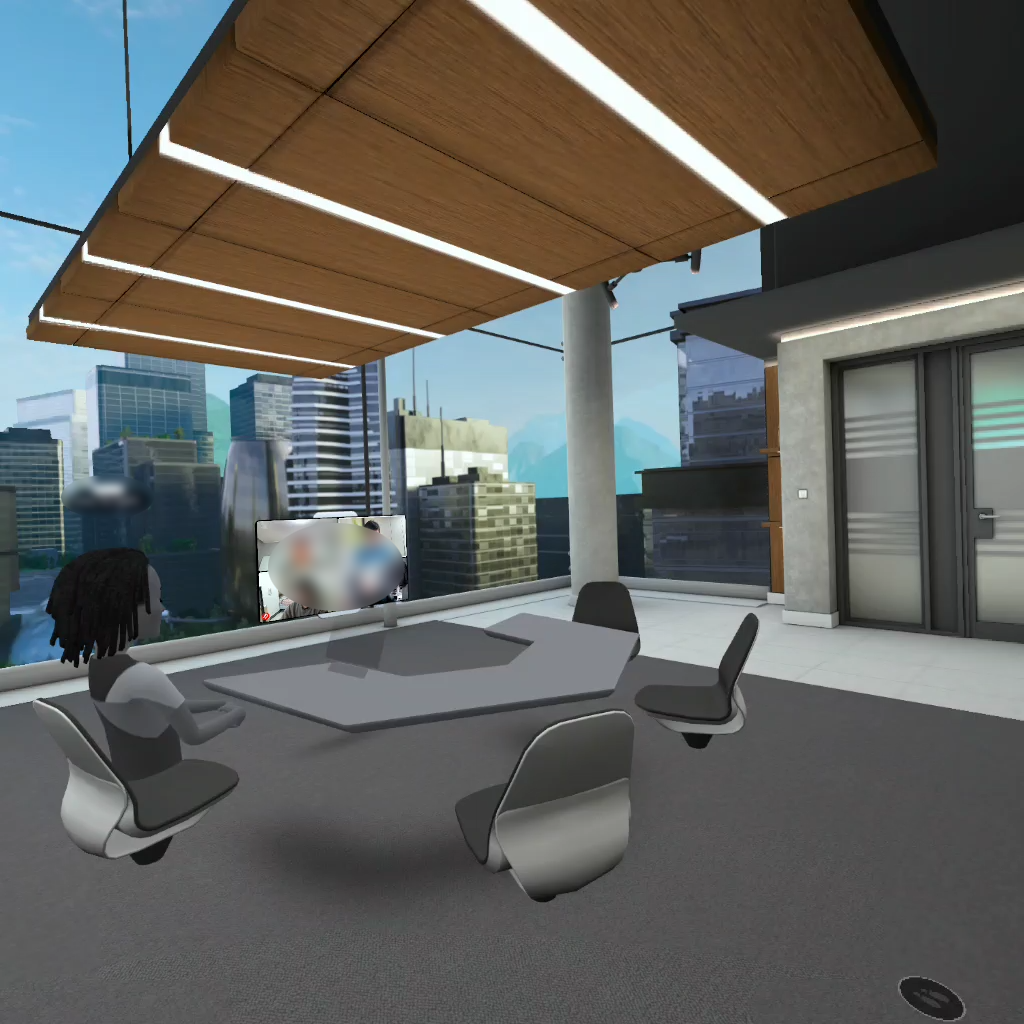 대체로 다른 화상회의와 동일하되, 이렇게 VR 속 환경이 같이 보인다는 점이 차이점이다.