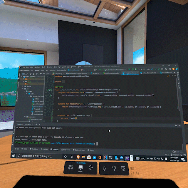 VR 헤드셋을 쓰고도 실제 컴퓨터 화면을 볼 수 있다.