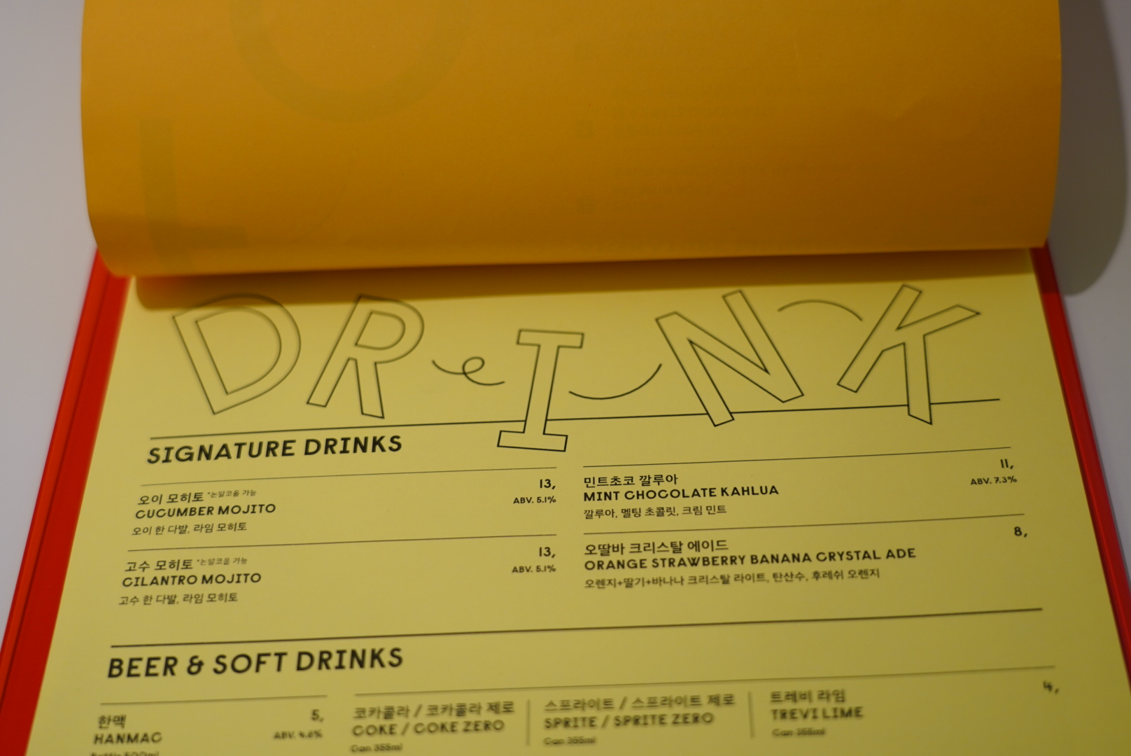 고수 모히또는 닉에서 느껴지는 불쾌함이 무색해지도록 매우 청량한 맛이 난다. 같이 간 일행들은 매우 만족했다. 나에겐 약간 한약같은 느낌이었지만...