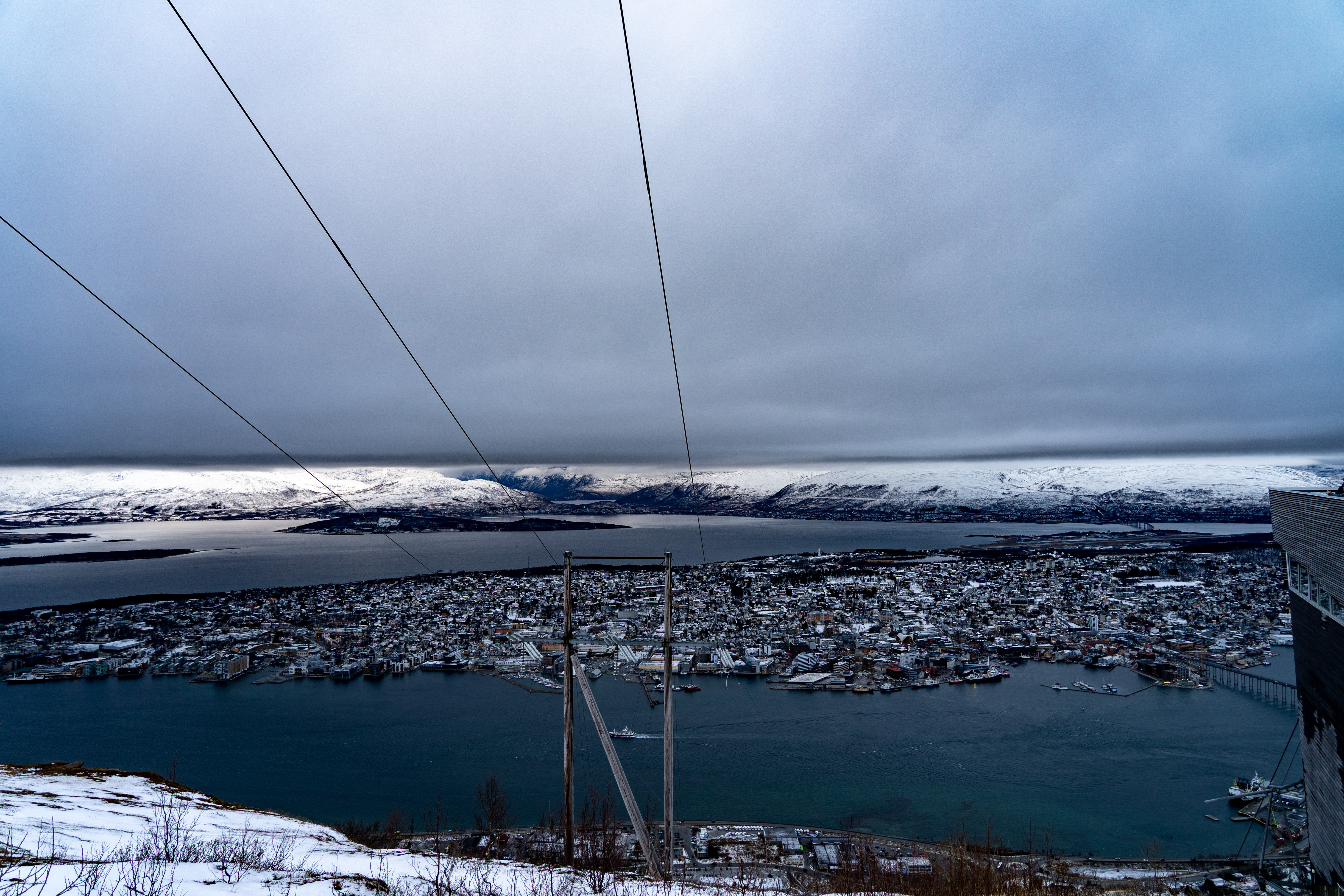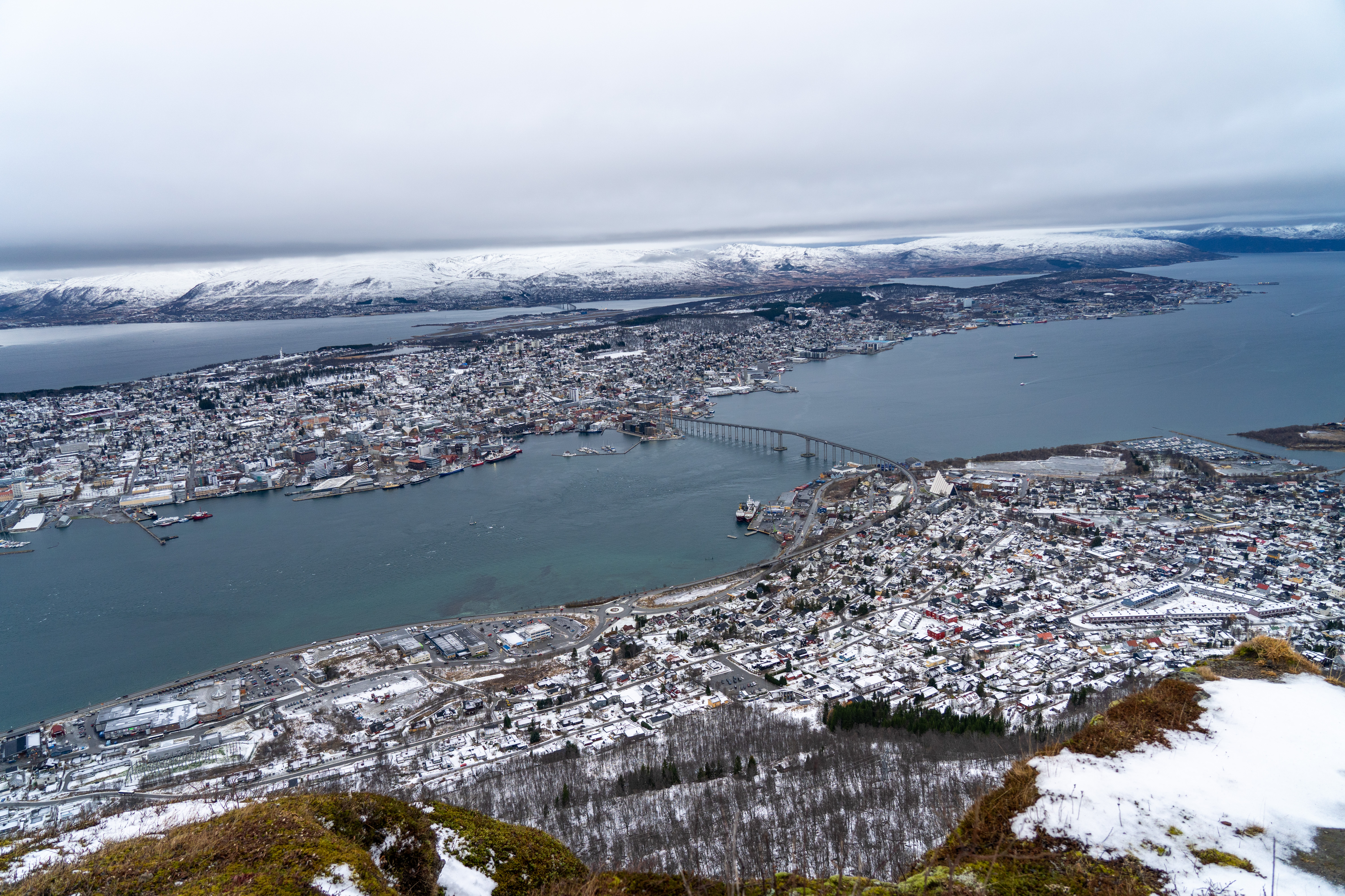 케이블카를 타고 올라가 전망대에서 바라본 트롬소는 생각보다도 좋았다. 특히나 바다 건너의 눈 덮인 섬이 "여기서부턴 진짜 북극이야" 라고 말하는 듯해서, 어딘지 모르게 가슴이 탁 트이는 듯한 느낌까지 들었다. 저 건너에는 세계 종자 보관소와, 깃헙의 소스코드가 보관되어있다던 그 "스발바르 제도"도 있겠지.. 그런 생각들을 하게 되었다.
