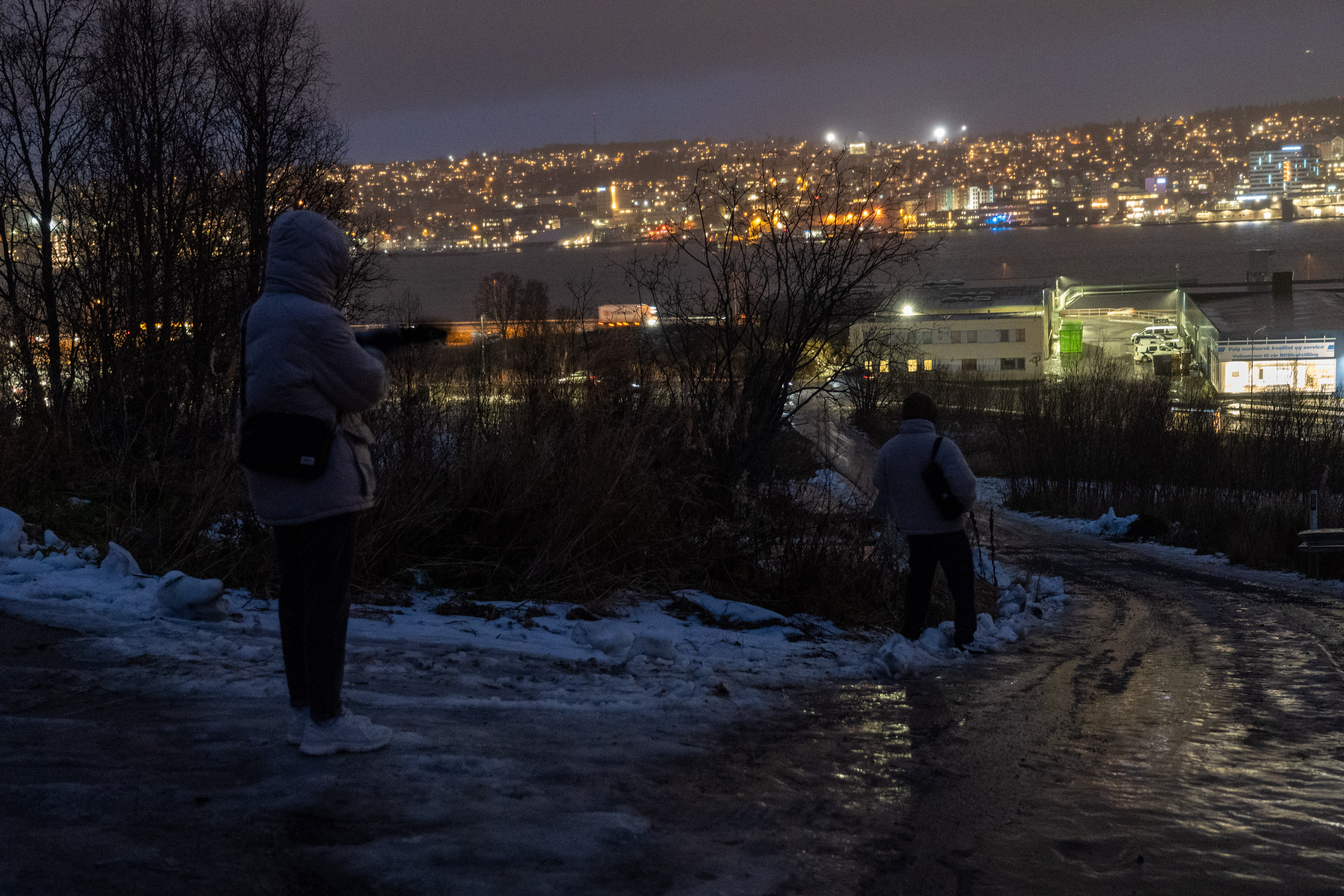 날이 어둑어둑해져서 다시 밖으로 나와 촬영을 했다. 트롬소는 확실히 야경이 더 예쁜 곳이었다. 눈으로 다 뒤덮인 그 차디찬 야경 속에서 따뜻한 노란색 조명들이 줄지어 켜져있는 걸 보자니, 어렸을 적 안데르센 동화를 읽을 때나 머릿 속으로 그려지던 그런 겨울나라가 바로 여기에 있었구나 싶었다.