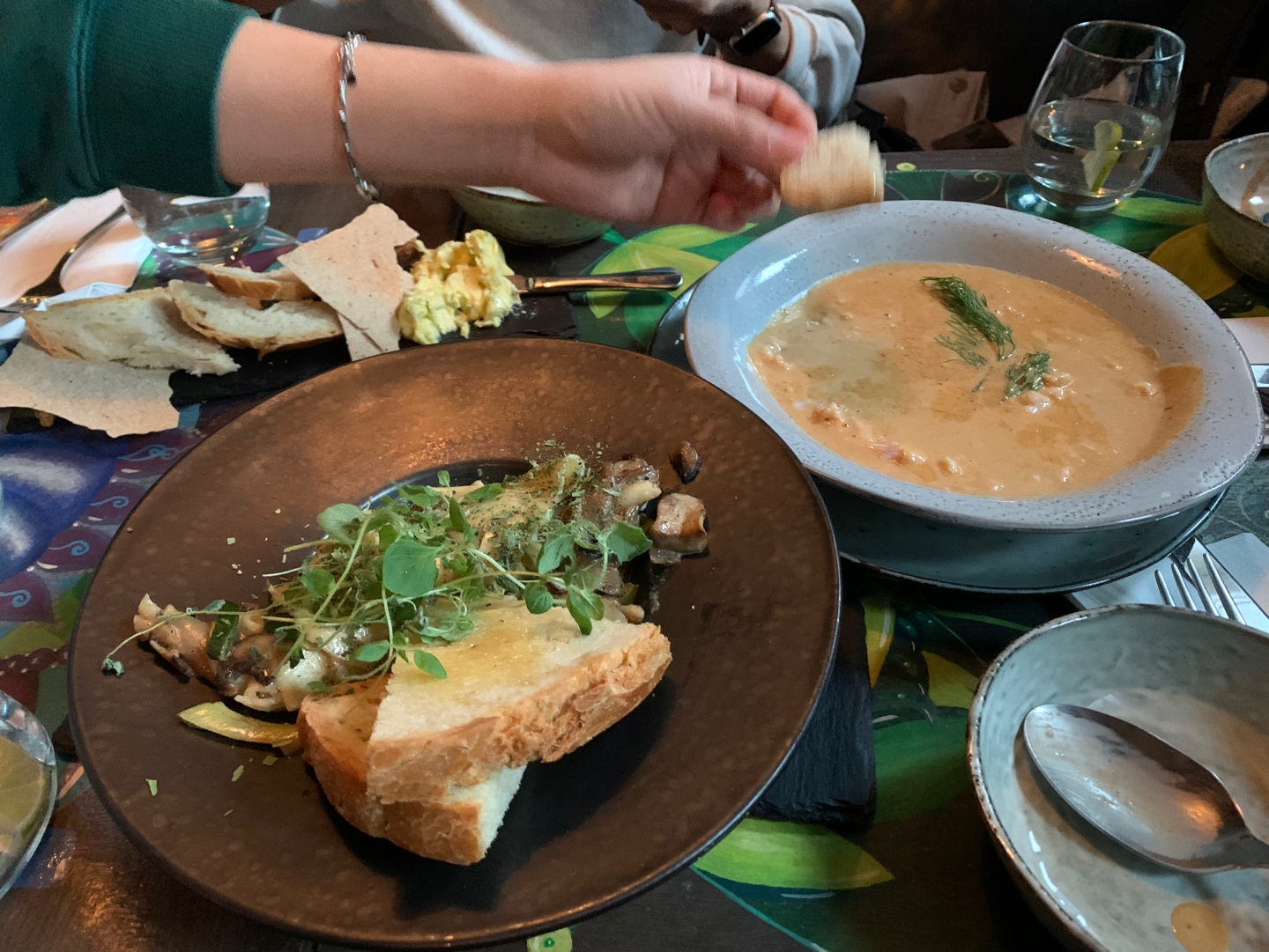"그래도 노르웨이인데 연어 요리는 먹어야 하지 않음?" 하면서 훈제 연어 에그 베네딕트를 골랐던 기억이 난다. 또, 새우 샌드위치를 주문했는데, 현재 서빙 불가능하다 하여 마늘 새우(말만 듣고보면 감바스 알 아히요..?)로 바꿔 주문했는데, 짭짤하니 먹어줄 만 했다.