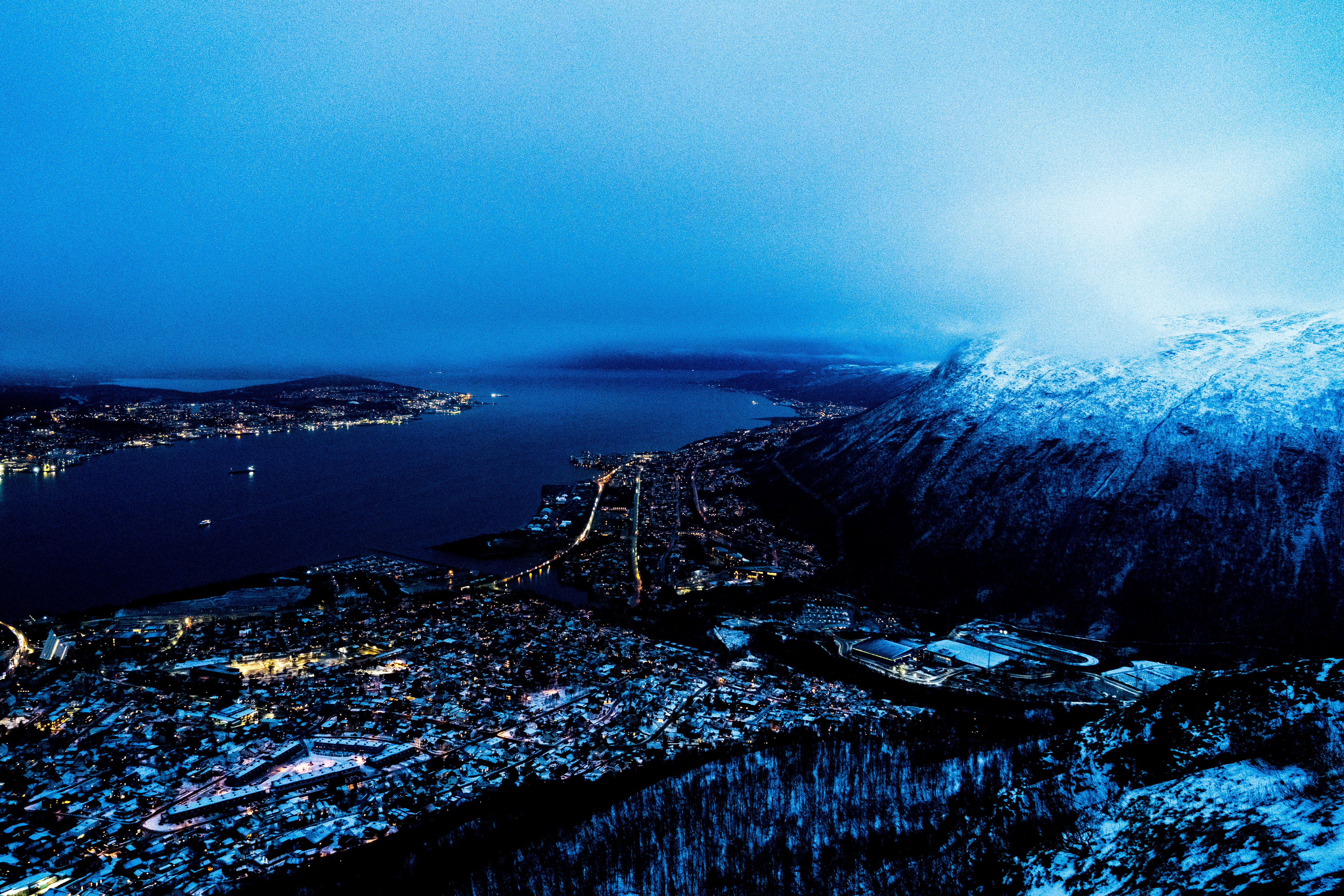 케이블카를 타고 올라가 전망대에서 바라본 트롬소는 생각보다도 좋았다. 특히나 바다 건너의 눈 덮인 섬이 "여기서부턴 진짜 북극이야" 라고 말하는 듯해서, 어딘지 모르게 가슴이 탁 트이는 듯한 느낌까지 들었다. 저 건너에는 세계 종자 보관소와, 깃헙의 소스코드가 보관되어있다던 그 "스발바르 제도"도 있겠지.. 그런 생각들을 하게 되었다.