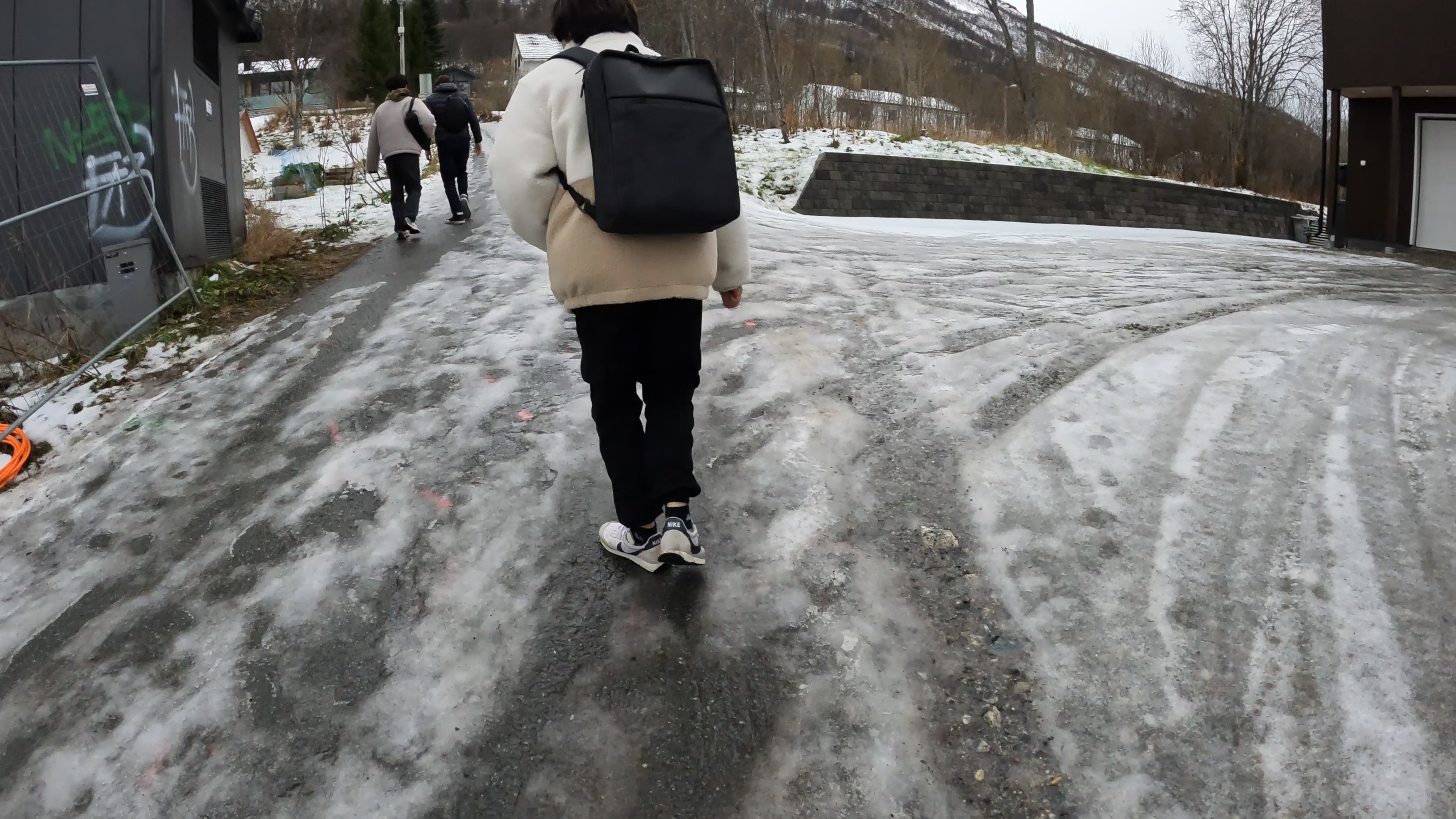 생각보다는 여정이 조금 험했다. 정류장에서 내리고 나서도 좀 걸어야 했는데, 오르막길에 얼어있는 길이라서 처음엔 아이젠 없이 이동이 가능한가 의문이 생길 정도였다. (그러나 이 나라 사람들은 이런 길을 자전거 타고 잘만 다닌다)