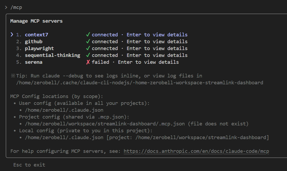 이 부분이 매우 흥미로운데, .mcp.json이 도대체 어디에 있는 것 말하는지 일언반구도 하지 않는다. ~/.mcp.json 일까? ~/.claude/.mcp.json 일까? 프로젝트 디렉토리의 ~/.mcp.json 일까? 내가 어딘가를 안 읽고 건너 뛴걸까? 이 글을 쓰기 위해서 다시 들어가봤지만, 여전히 이에 대한 설명은 없다.